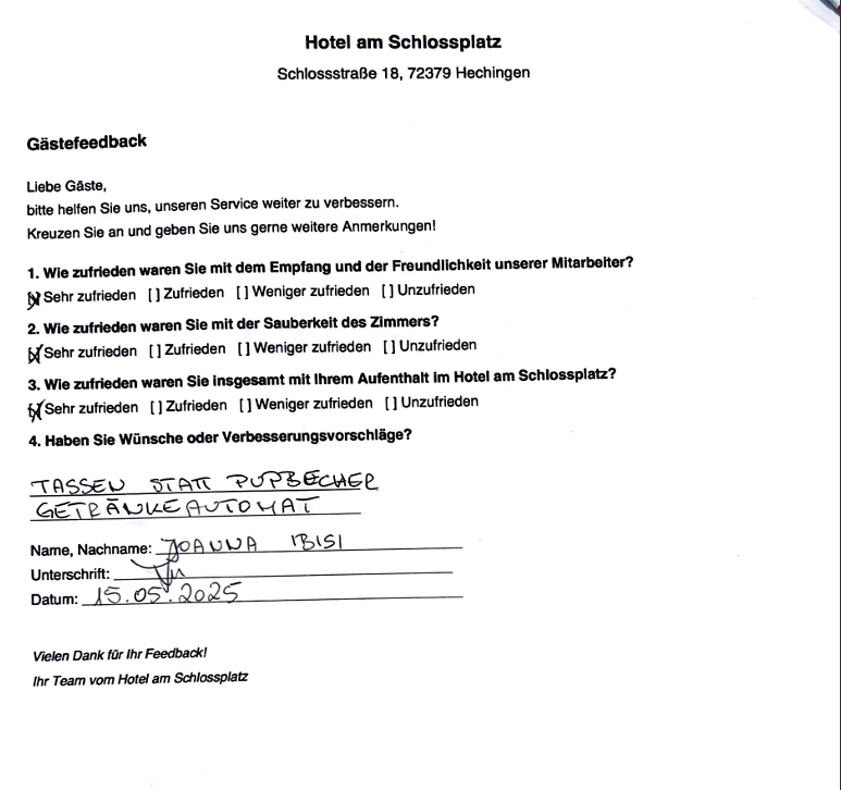 • Kostenlosen Kaffee, Tee und Wasser bei Ihrer Ankunft